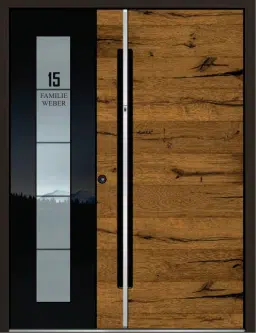 Die Herbstneuheit, exklusive Haustüren in schwarzer Optik mit Altholzdekoren.