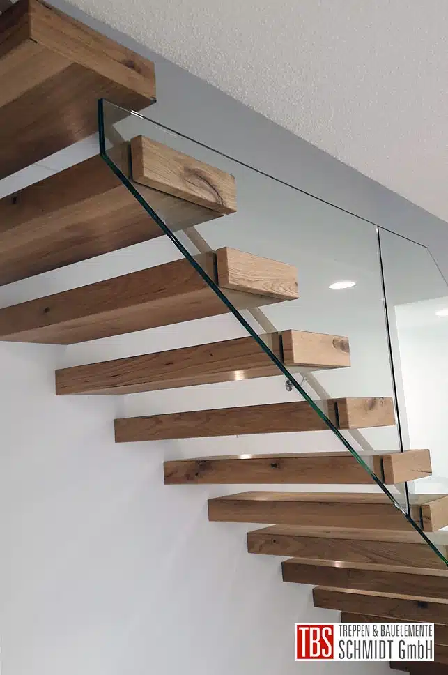 Gerade Kragarmtreppe mit Glasgeländer und Holzhandlauf